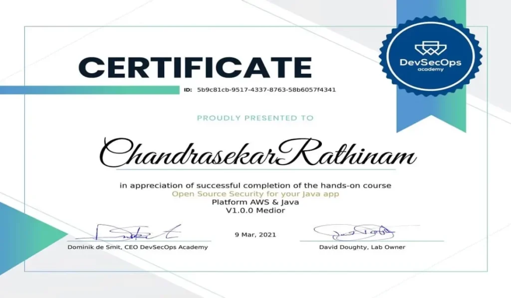 This accomplishment reflects my dedication to maintaining secure, robust, and compliant cloud-based Java applications.